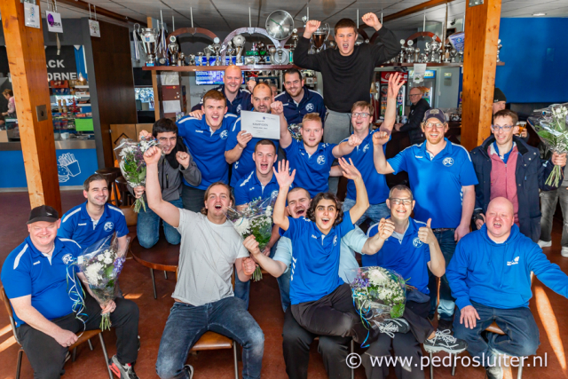 Ze hebben er een heel seizoen voor moeten knokken en ver voor moeten reizen, maar met een 5-8 overwinning in en tegen Colmschate is de titel binnen voor het G-team van HTC. Ingecalculeerde spanningen en verwachte zenuwen voor deze mijlpaal blijven uit. Na een minuut of vijf staat het al 0-3 en ondanks een eigen doelpunt van de waardige en verder prima spelende aanvoerder Valentijn Kappert blijft HTC op koers. Colmschate mag een speler aan het zevental toevoegen en omdat HTC dominant blijft later nog twee. Bij een stand van 2-8 heeft Colmschate drie spelers meer op het veld staan en daardoor wordt het uiteindelijk 5-8. Ruimschoots genoeg voor het kampioenschap in de derde klasse, een verrassende titel aangezien het team in vorige seizoenen steevast in de onderste regionen eindigde van de tweede klasse. Sinds dit seizoen is er een derde klasse. “We hebben dit seizoen maar één keer gelijk gespeeld en één keer verloren. Volgend seizoen kunnen we hopelijk laten zien dat we zijn gegroeid”, zegt Kappert. De 31-jarige in Raalte woonachtige Kappert is op het eerste gezicht niet iemand met een beperking en dat blijkt ook in gesprek met hem. “Veel mensen denken bij G-voetbal aan mensen met Down of een fysieke beperking. Ik heb een aan autisme verwante stoornis”, vertelt Kappert, één van de twee spelers in het team met een rijbewijs. Hij kwam via een ‘jobcoach’ in aanraking met G-voetbal bij HTC. “Via een traject heb ik sporten geprobeerd en voetbal vond ik het leukste.”